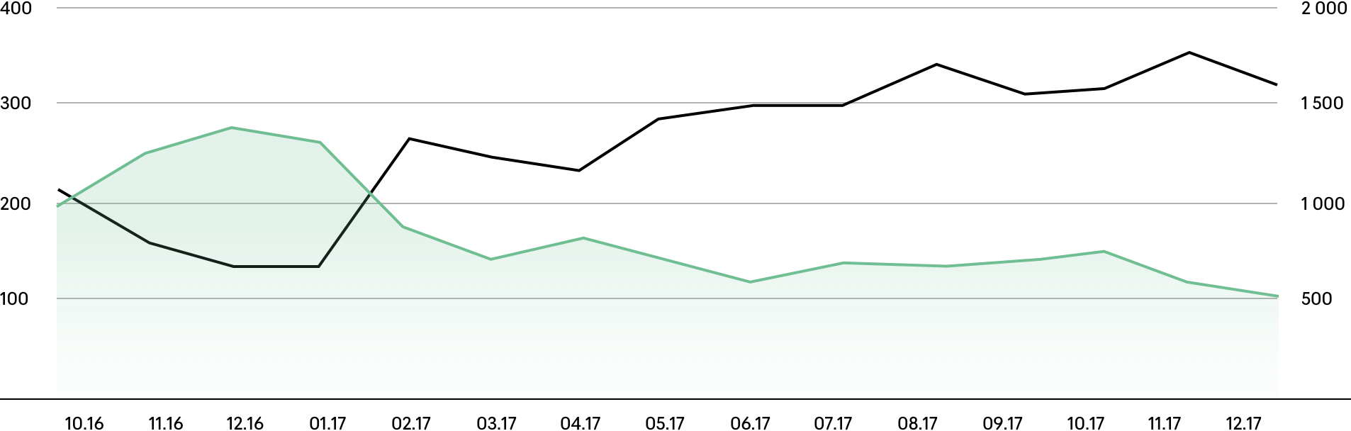 В конце каждого месяца — анализ кампании по конверсии, отказам, стоимости клика, лида, количеству звонков. С мая 2016 года перераспределяем бюджет с учетом стоимости и конверсии и в Яндекс.Директе, и в Google Adwords. Часть «дорогих» запросов ушла в Adwords, где конкуренция меньше, а стоимость ниже.