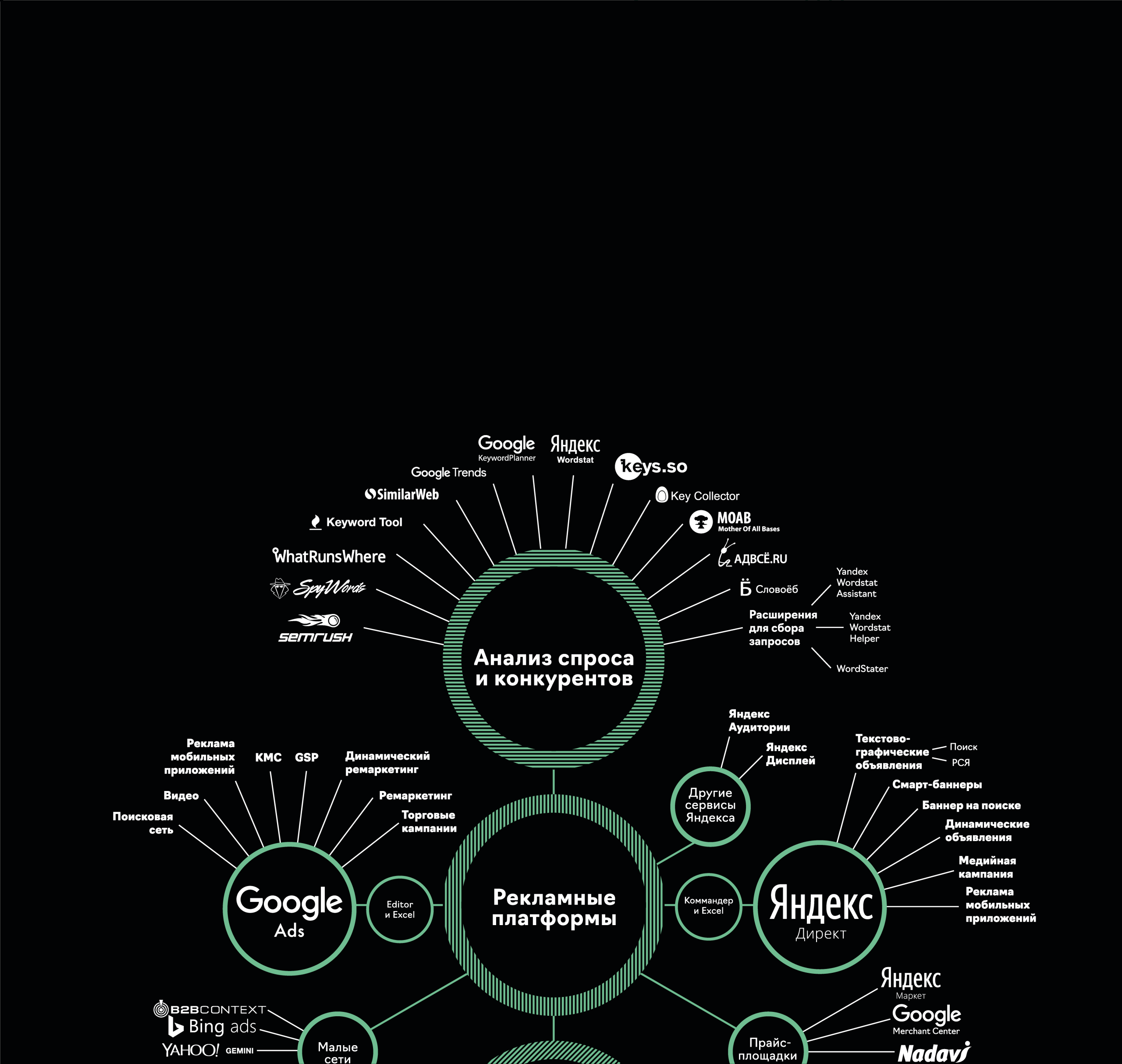 Инструменты, которые используем при работе над контекстной рекламой, показывает наша инфографика: