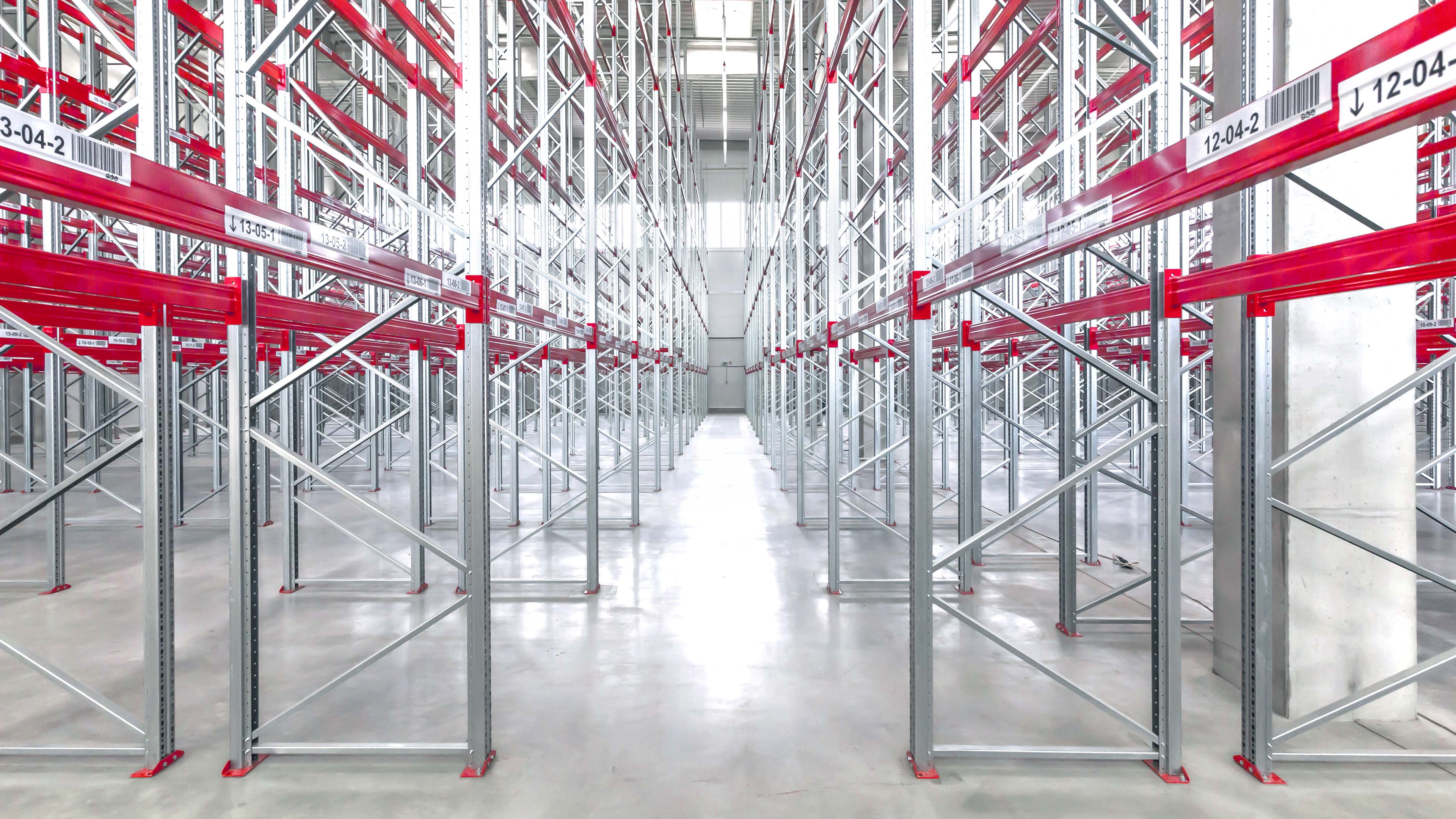 При поиске идеи для айдентики оттолкнулись от главной формы продукта и взяли за основу метафору склада с пустыми стеллажами. Его правильная геометрия ассоциируется с порядком, точностью, практичностью.