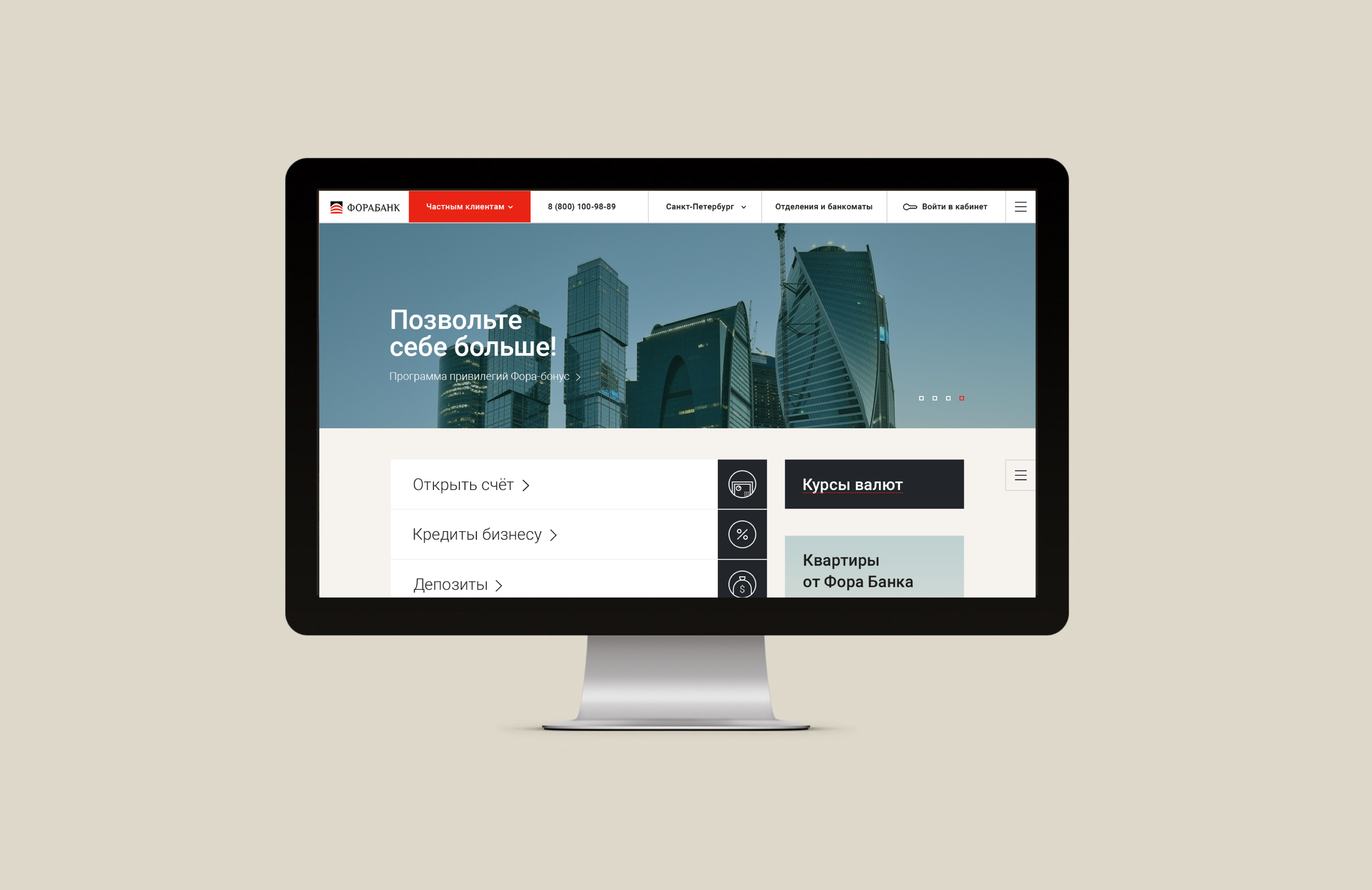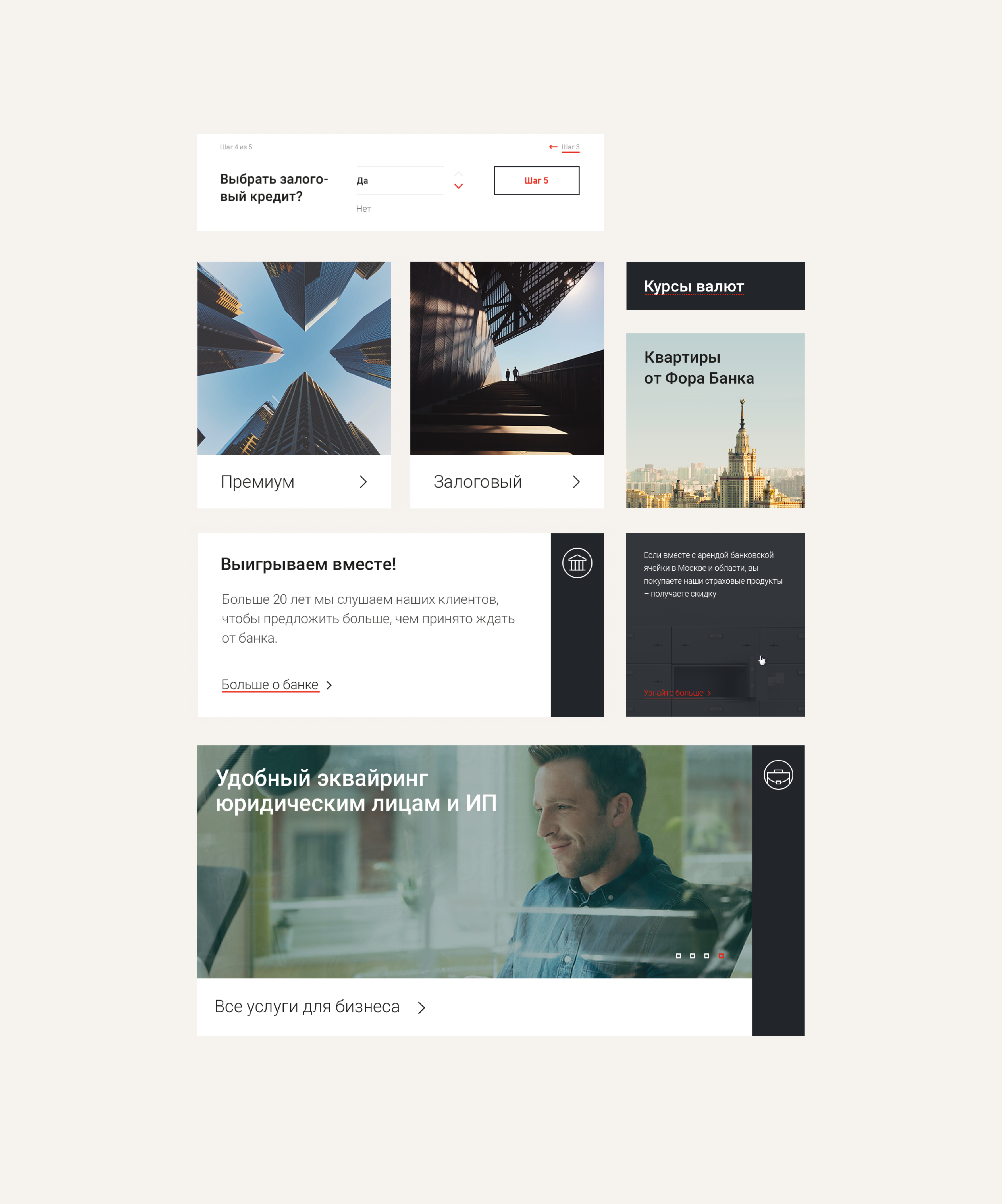 Фора хотела, чтобы сайт соответствовал статусу и задачам банка, например, отвечал требованиям разных отделов и помогал им справляться с планом продаж. Еще старая версия не работала на мобильных, не подходила визуально и не справлялась с презентацией компании — мы взялись за обновление проекта. Сейчас за наполнение сайта отвечает банк.