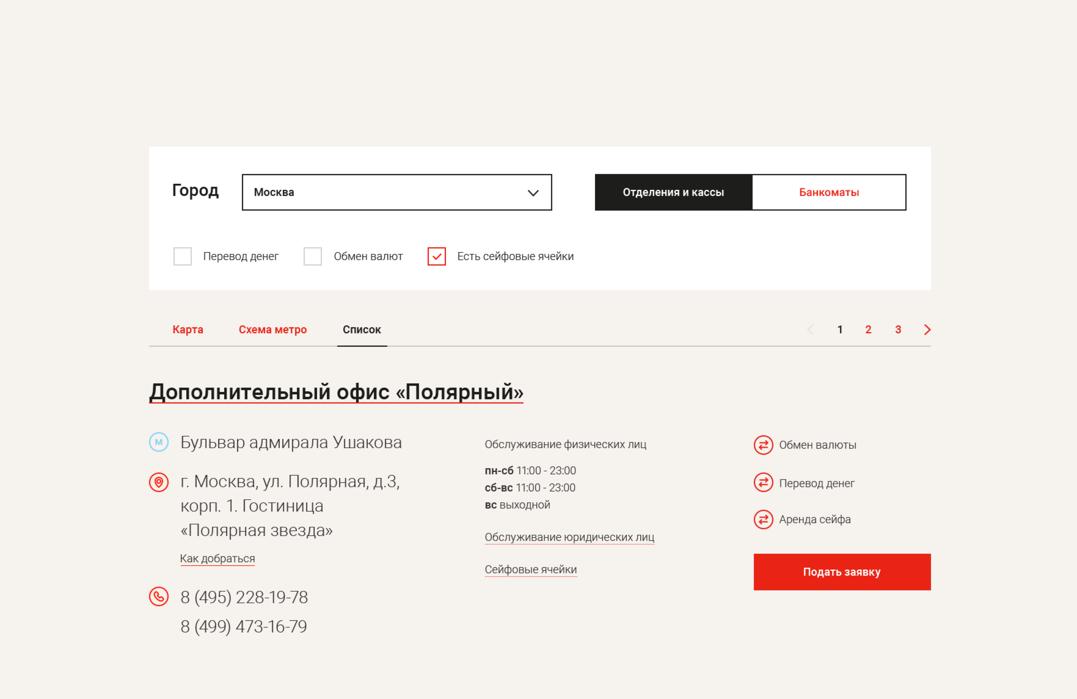 Компания работает для частных клиентов и компаний, конкурируя с большинством федеральных банков. В ней оформляют кредиты, карты, вклады, переводят деньги и обменивают валюту, но банк известен нестандартными для отрасли продуктами, например, арендой сейфов, витриной залогового имущества и продажей монет.