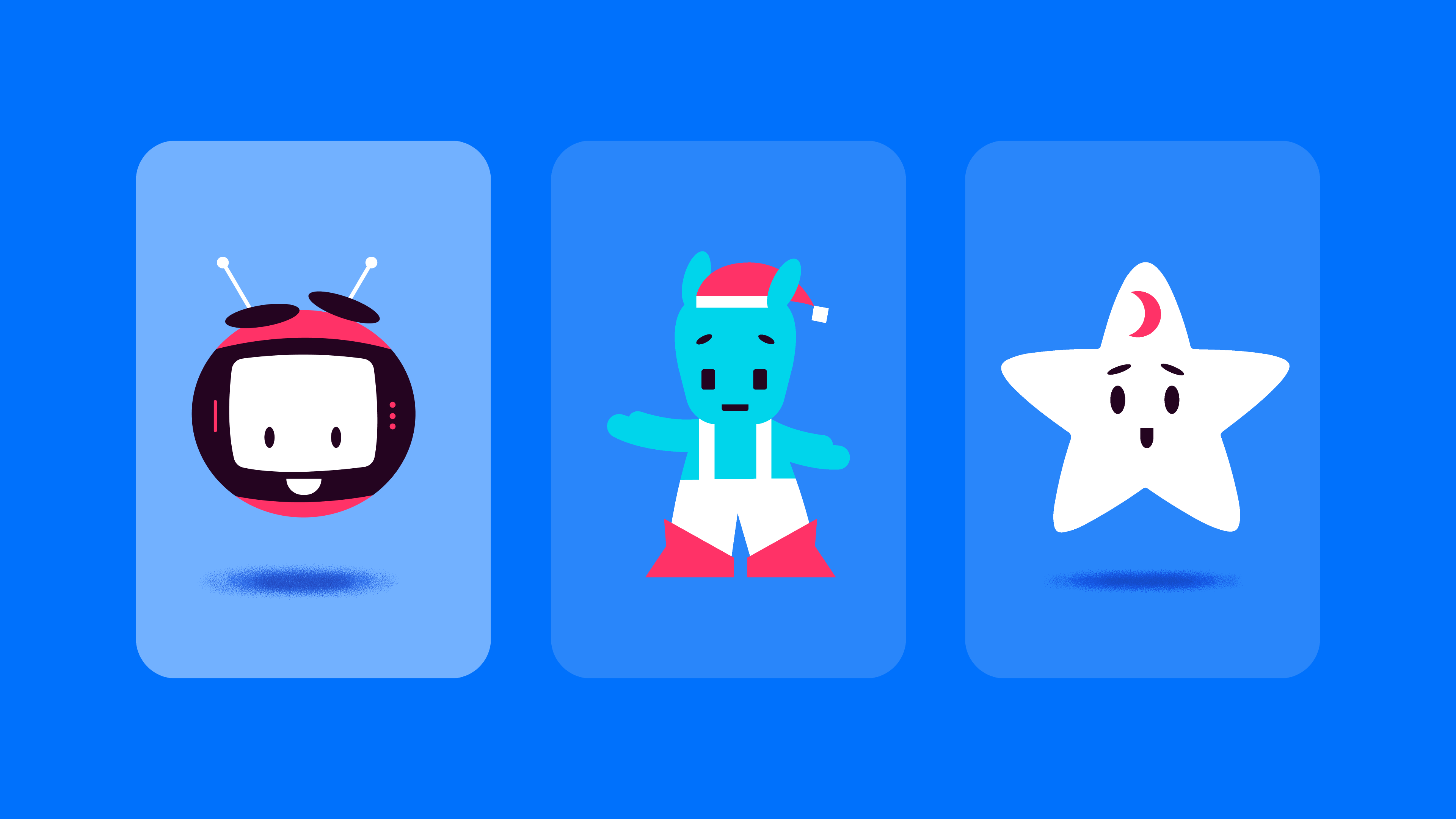 На первых этапах концепции было три персонажа-помощника, и пользователь мог выбрать — с кем он хочет собирать открытку.