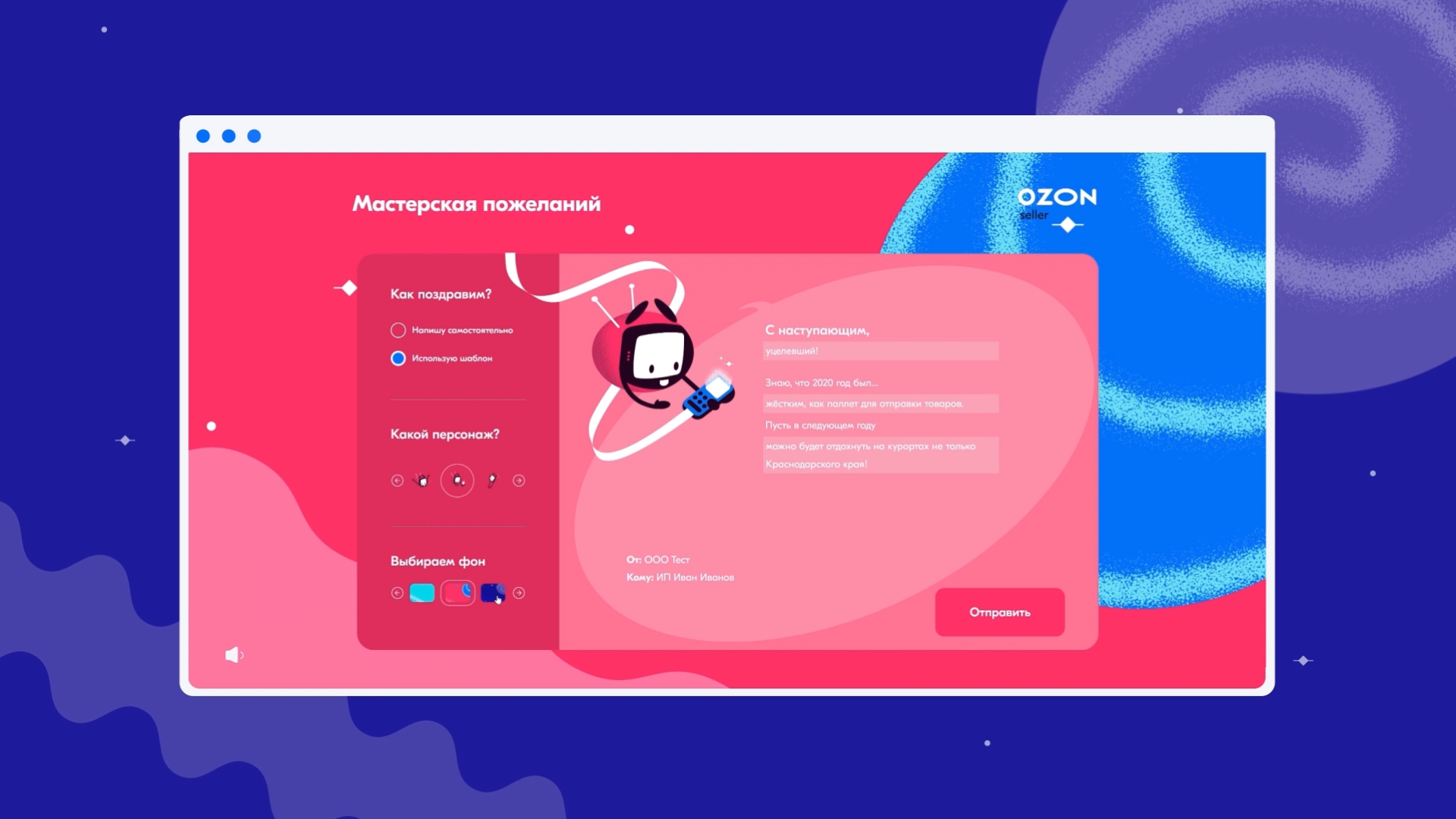 Перед нами стояла задача: подготовить новогодний спецпроект, который поможет объединить комьюнити продавцов Ozon, признать их достижения за прошедший год и поблагодарить за вклад в развитие площадки.