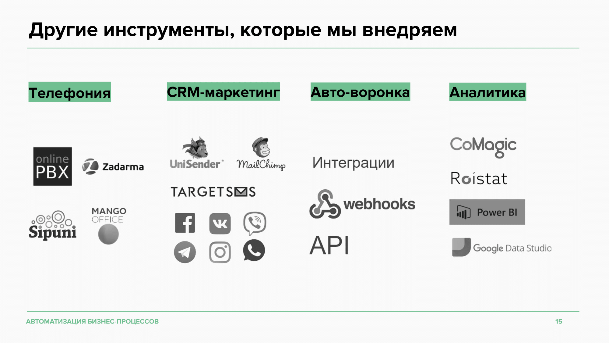 ΠΠ½ΡΡΡΡΠΌΠ΅Π½ΡΡ: Roistat, PowerBI, Google Data Studio, CoMagic