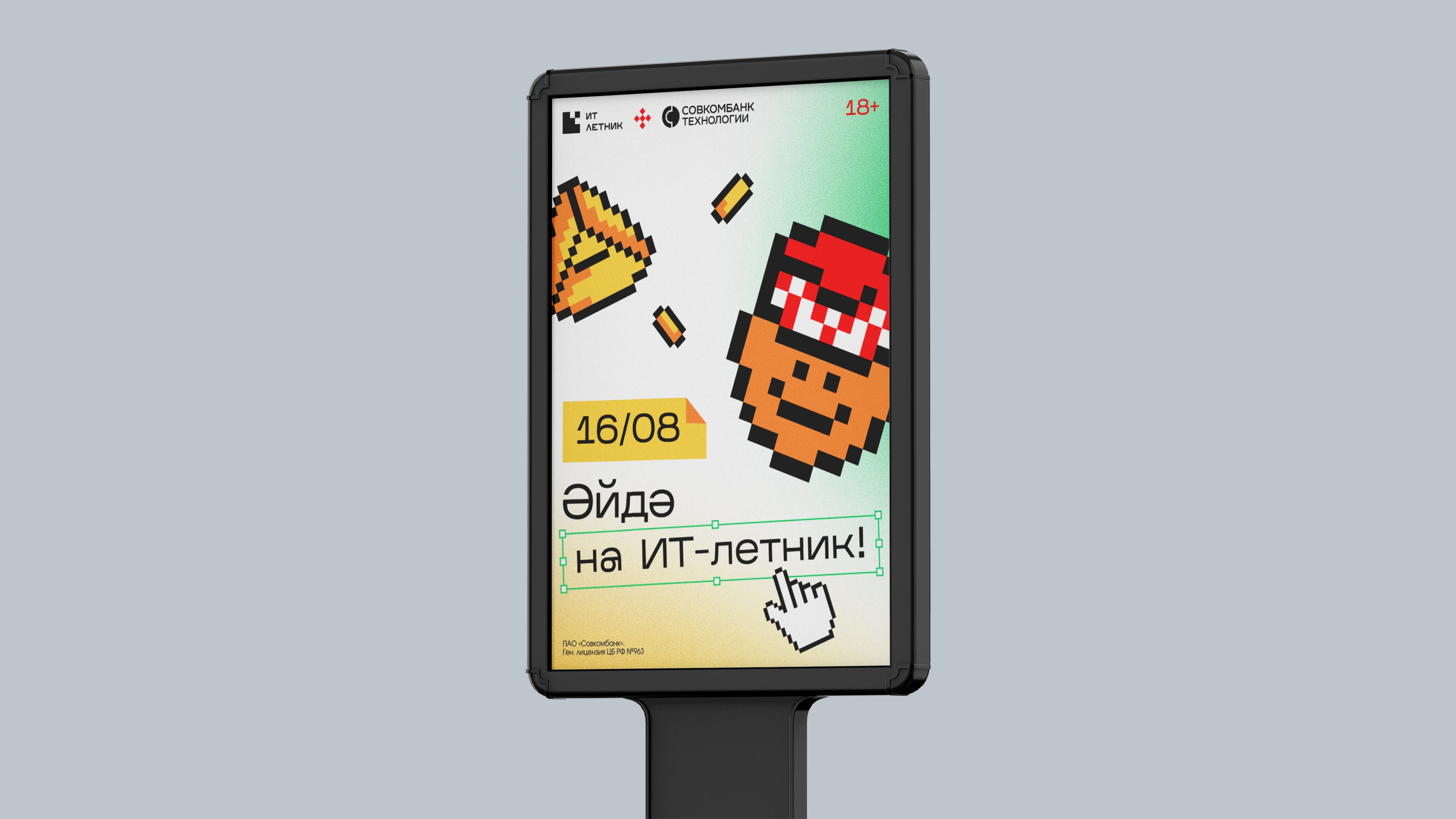 Запустили диджитал-наружку в центре Казани. Кампания стартовала за месяц до события и включала в себя ролики на медиафасадах. Визуализация строилась на понятных целевой аудитории элементах татарской культуры через узнаваемый формат в ИТ-сообществах — пикселизацию картинки.