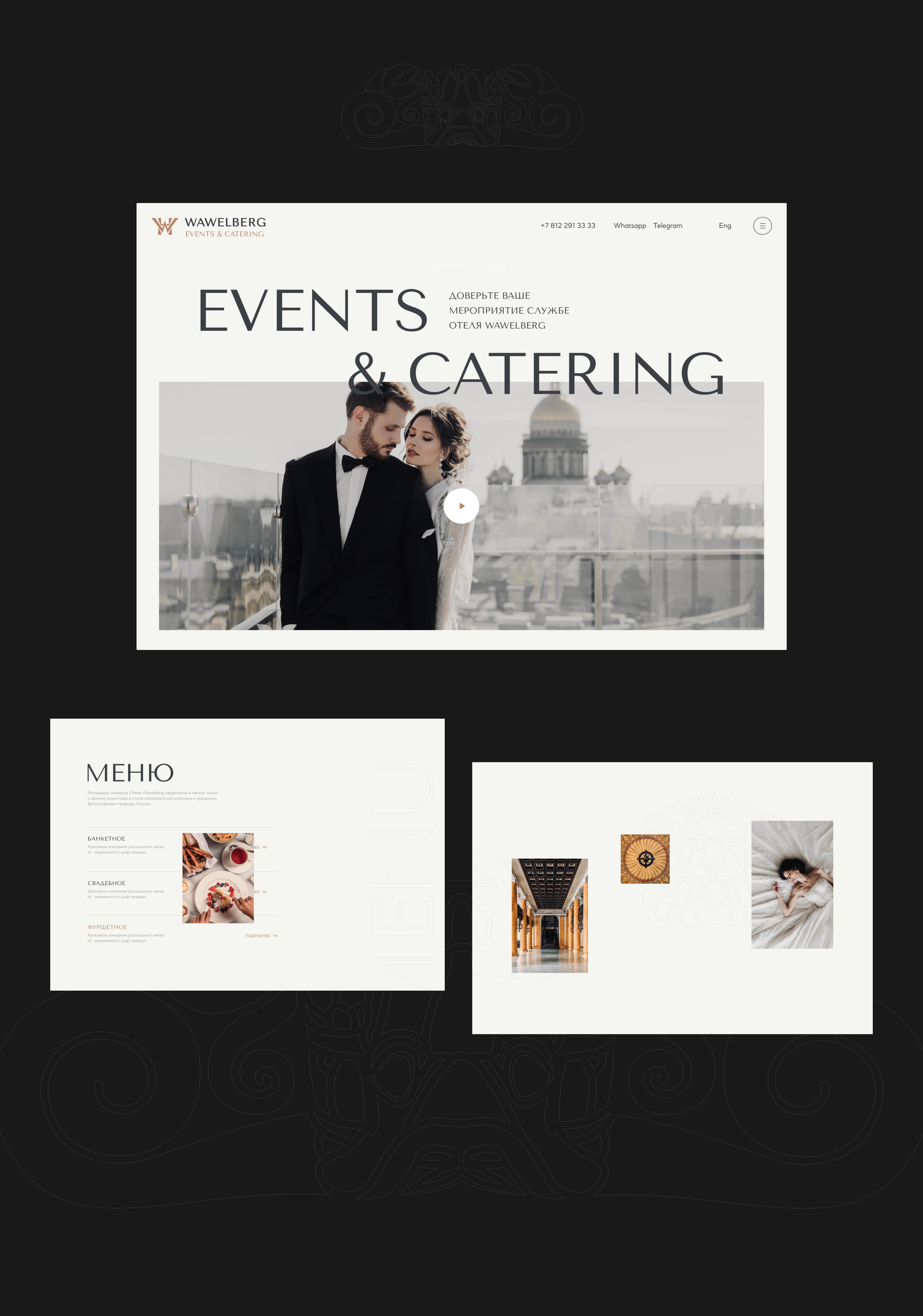 Дом Вавельберга  объект культурного наследия Петербурга. Он и стал вдохновением для стилистических приемов в дизайне лендингов. За основу всех трёх концепций взяли интерьерные решения самого здания: узнаваемые маскароны, материалы отделки и оформления. Объединили разные приемы фирменной палитрой цветов, шрифтами и идентичностью шапок и футеров лендингов.